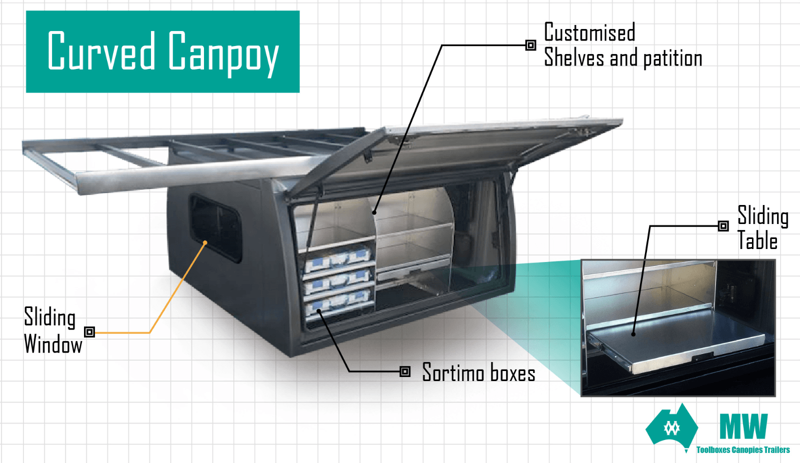 MW Canopies is the Industry standard for all trades, Kendys caravans is the representative for the Central Coast to supply and fit custom made caopies